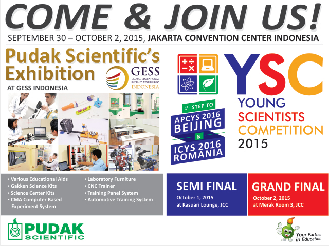 Pudak Scientific akan berpartisipasi dalam GESS Indonesia yang diselenggarakan di Jakarta Convention Center (JCC), Jl. Jendral Gatot Subroto, Senayan, Jakarta.