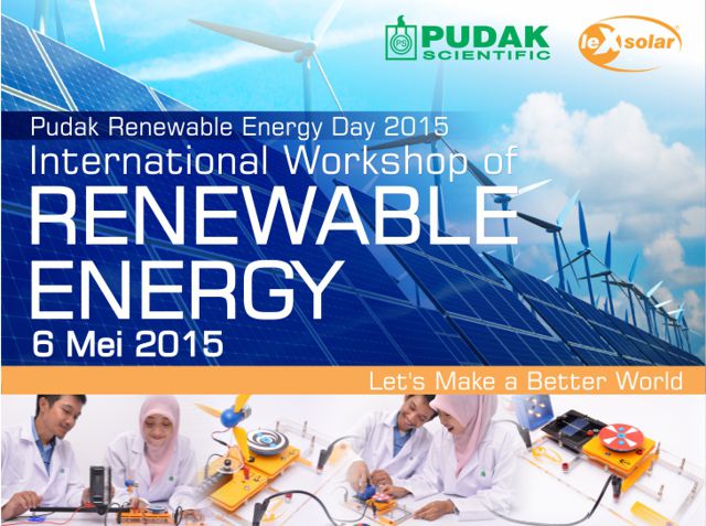 Persediaan cadangan energi bahan bakar fosil yang semakin berkurang, terutama minyak bumi dan batu-bara, mendorong Pudak Scientific, selaku perusahaan yang bergerak di bidang alat peraga pendidikan dan laboratorium, untuk berpartisipasi dalam mengenalkan sumber energi alternatif, salah satunya dengan memberikan edukasi kepada guru dan dosen SMK, politeknik, dan yang sederajat. Kegiatan edukasi ini terbungkus dalam kegiatan bernama “Pudak Renewable Energy Day 2015: International Workshop of Renewable Energy”. |