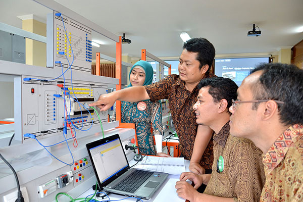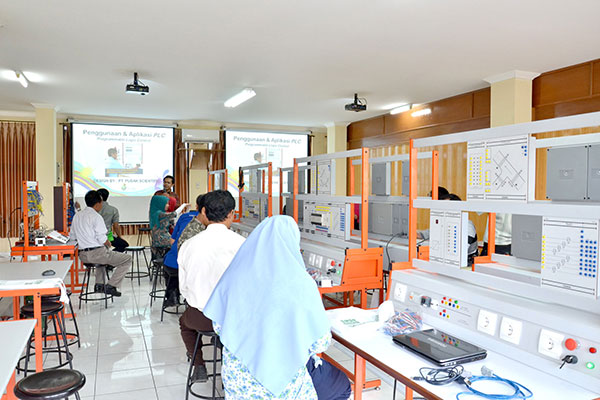 Topik pelatihan yang beraneka ragam, meliputi: PLC – otomasi industri, mikrokontroler, mikroprosesor, instalasi elektrikal, mesin elektrikal, servo motor dan refrigerasi. |